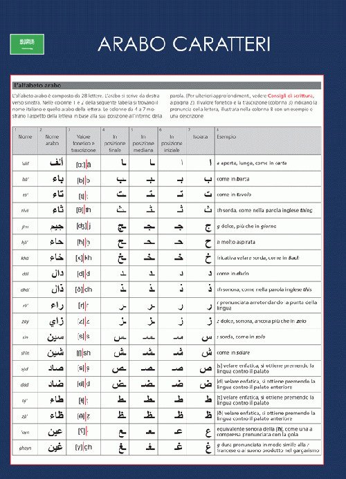La scheda "A Prima vista Arabo Caratteri" offre uno strumento pratico ed efficace a chi si affaccia allo studio del misterioso e affascinante sistema di scrittura arabo, in ambito scolastico , professionale o nel tempo libero. L'alfabeto arabo è presentato nella scheda in forma intuitiva e schematica per un primo approccio alla scrittura nella lingua semitica per eccellenza.