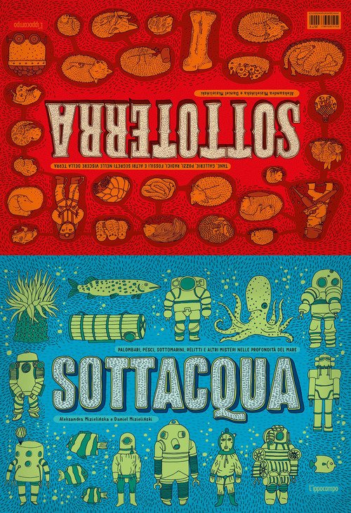 Dopo i giochi e le avventure de La città della carpa danzante, entra nel catalogo L'ippocampo un grande successo del duo Mizieli?ska & Mizieli?ski. Un libro da leggere a partire da un lato e poi dall'altro. Da una parte, si va alla scoperta del mondo sottomarino, fra subacquei a caccia di record, scienziati a bordo di navi oceanografiche, bizzarre creature degli abissi, camini idrotermali, fosse oceaniche, sommergibili e relitti. Dall'altra, si sprofonda insieme a speleologi, minatori e semplici passeggeri della metropolitana, per trovare ossa fossili di dinosauro, reperti archeologici, tane di animali, radici di alberi giganteschi, tubazioni, miniere e grotte labirintiche, senza dimenticare le verdure dell'orto... Vivaci illustrazioni in sezione e descrizioni dettagliate guidano i lettori in profondità, dallo strato subito sotto i piedi alle lussureggianti barriere coralline, fino al nucleo incandescente della Terra, posizionato al centro del libro. Un albo-documentario di grande formato con cui stupirsi della complessità del nostro pianeta. Età di lettura: da 8 anni.