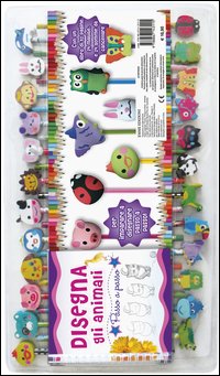 Un libretto di 32 pagine con istruzioni per disegnare gli animali e 24 coloratissime matite con gomme da cancellare sagomate a forma di animaletti. Età di lettura: da 3 anni.