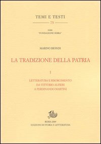 Nel cuore del libro di Marino Biondi, vibra la corda aurea del Risorgimento, quella garibaldina, e a Garibaldi, alla sua storia e al suo mito, in particolare all'impresa dei Mille, è dedicato il saggio più vasto del volume. Questo primo tomo, di una ricerca che ha voluto intitolarsi a "La tradizione della patria", si colloca consapevolmente entro una linea di solido storicismo letterario nel tentativo di ricostruire, da Alfieri a Martini, la vocazione all'unità e all'onore di patria di alcune figure esemplari della nostra storia fra Settecento e Ottocento. Il volume, che sarà completato da un secondo tomo su Carduccianesimo e storia d'Italia, nasce dentro un dibattito politico, irradiato dalla stampa di questi ultimi mesi, affollato di voci variamente allarmate sulle obiezioni mosse da più parti, dal Nord al Sud, all'Unità del paese, e alla sua effettiva legittimità e tenuta.